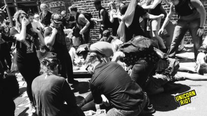 The Unite The Right leaders speaking on the call spoke about the “green”, “yellow”, and “red” contingency plans to be carried out depending on the results of a court case regarding the status of their rally permit, and the willingness of police to collaborate with their security. They also stated their intention to innovate new ways to escalate tactics to use against their anti-racist, anti-fascist opponents.