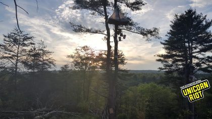 Huntingdon County, PA – In May, Unicorn Riot visited Camp White Pine, a direct action encampment on the Gerhart family’s property in the hills of Huntingdon County, PA. Several tree-sits currently sit on the easement for the Mariner East 2 pipeline, where Sunoco has claimed eminent domain to build the pipeline against the property owner’s consent. Read our report here.