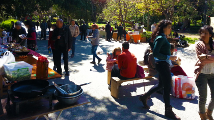 I left the march and went into the Benito Juarez Stadium where thousands of people waited. I entered, signing in as press and was given an hour to walk the grounds and talk. I walked the stadium and saw children darting around. I saw mothers, fathers, and people of every age and gender all in this place. I sat in the middle of a field and some people walked up and sat next to me.