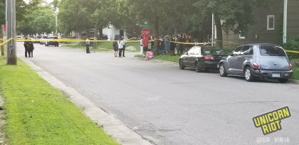 Unicorn Riot interviewed Anishinabe artist Rory Erler Wakemup, who created the vision for Smart Wars. Included in the video, Unicorn Riot also interviewed participating artist Tabashish Anamiki Ogitchida. The performance included dozens more “multigenerational, multiracial and multigendered” contributing artists “inspired to restore indigenous reality to humanity, earth, air and water.”