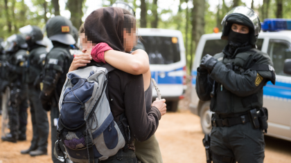 During the left-wing counter-demonstration on September 1, a group of protesters were kettled for hours in the Johannisplatz plaza between two buildings and two lines of riot police. A group of demonstration paramedics (DE: Demo-Sanis, Demonstration Sanitäter) entered the kettle to provide aid to those who were injured in the clashes with the police and during the kettling process.
