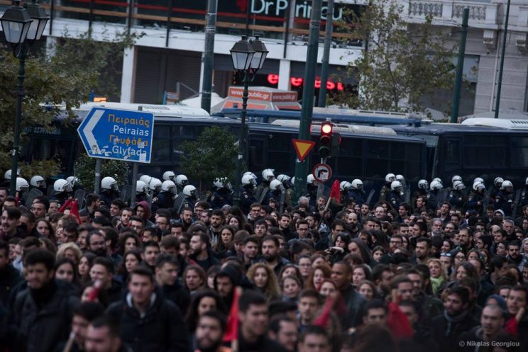 Thousands of police were deployed throughout Athens during the November 17 commemoration, which routinely draws large clashes with police during the night. The yearly commemoration brings thousands of people to the streets to demonstrate against the military and state for killing dozens of people outside of Polytechnic University in Athens on November 17, 1973 as they rose against oppressive military rule.