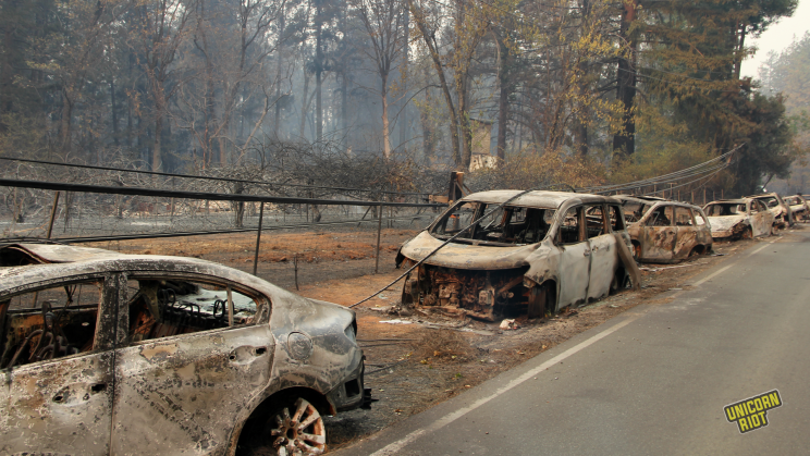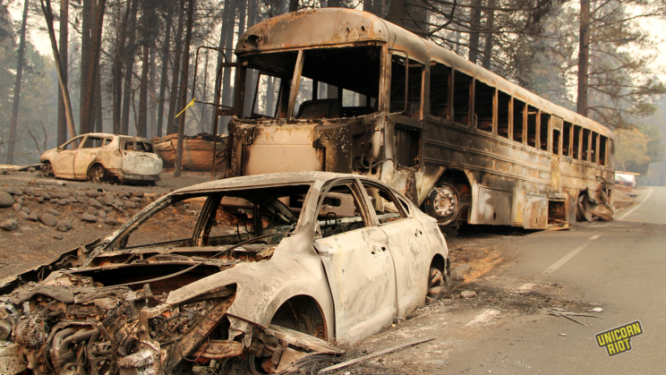 Butte County, CA – Dozens have died and hundreds are missing in the most deadly and destructive wildfire in California’s history. Unicorn Riot is in the evacuation zone documenting the unfolding disaster. The fire started five days ago on Camp Creek Road and has been officially named the ‘Camp Fire’. At just 30% containment, it is continuing to rage near Chico, and Oroville, California.