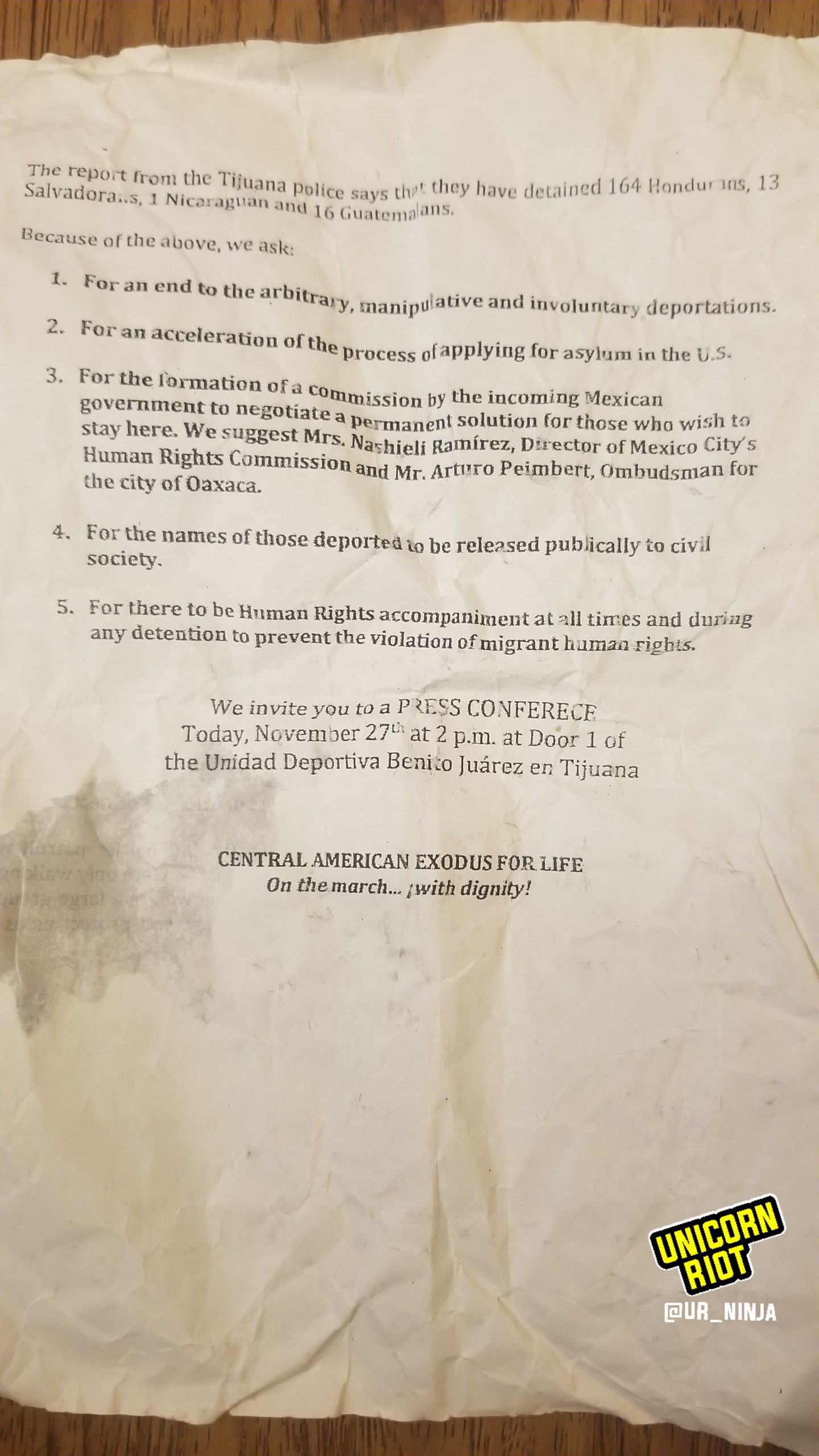 Migrant Press Release Single story posts page footer widgets mobileYour Source For Independent Media – No Ads or Paywalls – Viewer Supported A picture of translation of a press release sent out to medis.