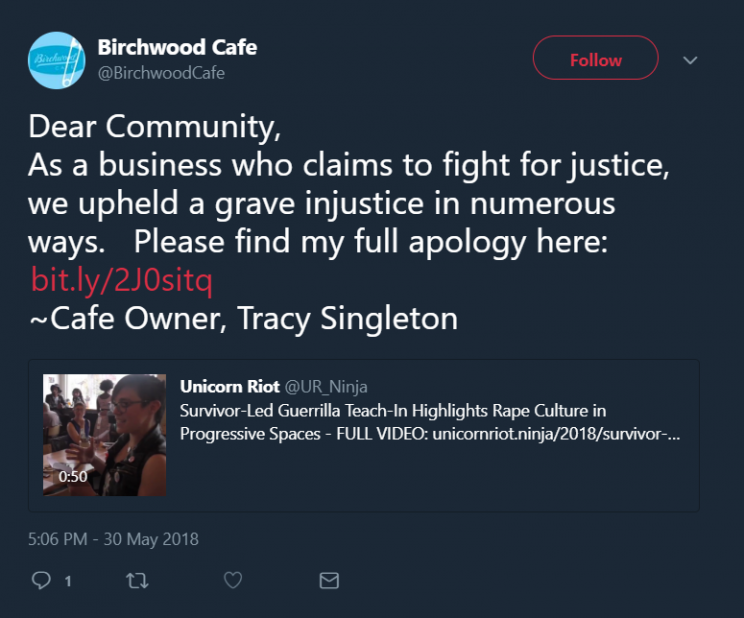 @BirchwoodCafe public apology tweet Single story posts page footer widgets mobileYour Source For Independent Media – No Ads or Paywalls – Viewer Supported