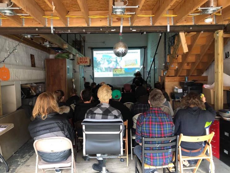 The Sunday morning sessions covered democratic confederalism politics from North America to Rojava, an autonomous region in Syria. Included were the Symbiosis project, “a confederation of community organizations across North America, building a democratic and ecological society from the ground up;” concepts related to writer Murray Bookchin; and prisoner support from the Certain Days: Freedom for Political Prisoners Calendar collective.