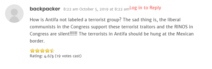 “Anifa[sic] is calling for a black bloc action … meaning that it is all out warfare against Trump supporters and no sort of violence is off limits.” — Washington Sentinel post about Antifa, October 3, 2019