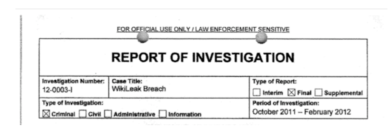 This previously unknown element of the FBI’s investigations into WikiLeaks was uncovered by comparing two different FOIA releases of the same document, one filed in 2013 and one in 2019. References to WikiLeaks are redacted in the 2013 release (obtained by the Government Attic and posted in 2016) along with the description of the FBI’s briefing and a few names, though the rest of the document was unredacted. The 2019 release has more details of the investigation redacted, but leaves the case title unredacted – “WikiLeak Breach.” By comparing the two documents, a clearer picture of part of the FBI’s WikiLeaks investigation emerges.