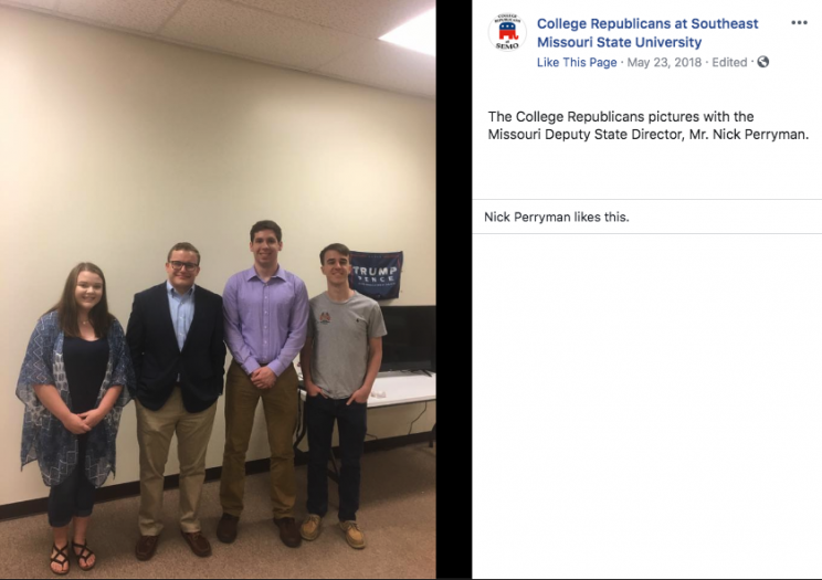 In another photo shared by SEMO College Republicans, Gavin Sample is seen posing alongside Missouri GOP Deputy State Director Nick Perryman.