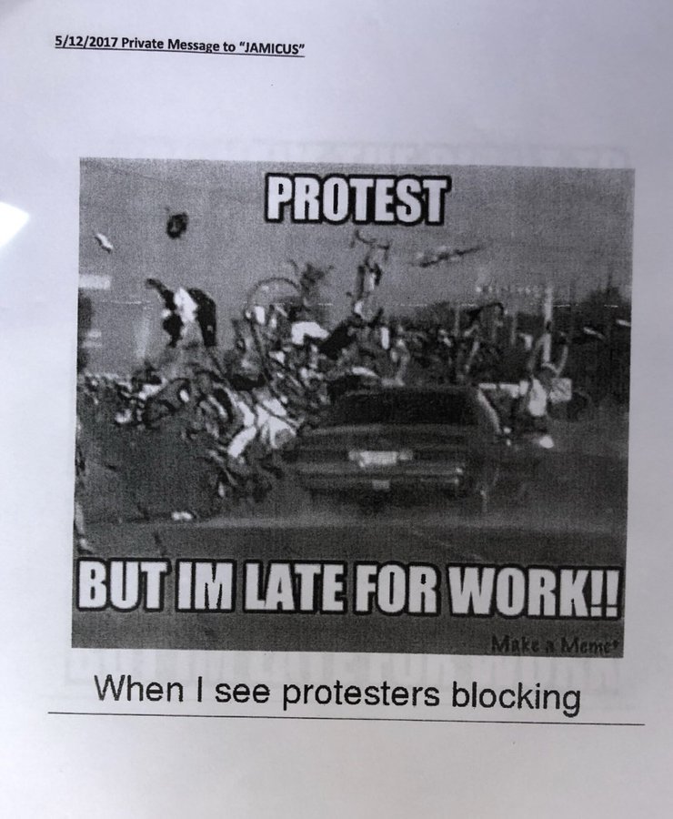 Fields’ Instagram account, @TheBigBoss1337, repeatedly shared memes featuring images of marching protesters being run down by cars.