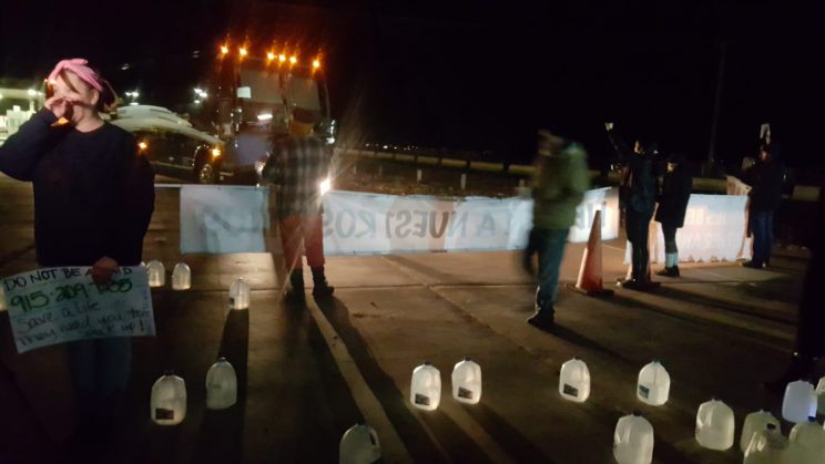 On New Years eve, members of the Tornillo action camp blocked the coach buses carrying employees of the facility who are brought in from El Paso, delaying the change of shifts by an hour. Juan Ortiz, an indigenous organizer from El Paso, TX, explained these actions in his statement: