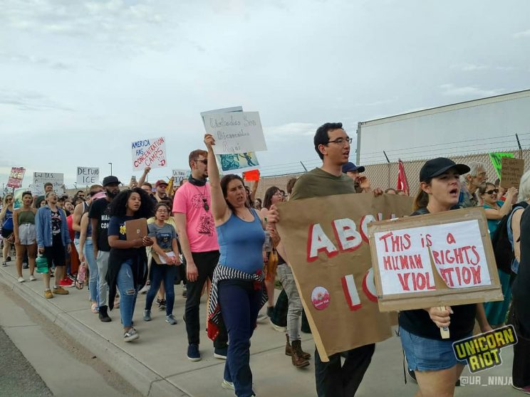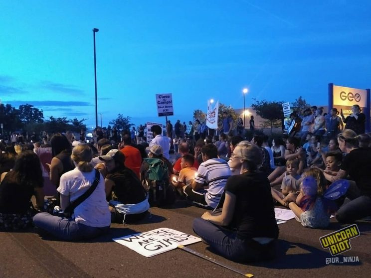 Aurora, CO – On Friday, July 12, 2019, more than 1,500 people participated in a protest outside the sole Immigration and Customs Enforcement (ICE) detention facility in the state, owned and operated by the private prison corporation GEO Group.