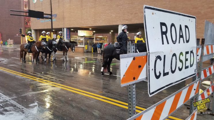 Police on horseback trampled anti-#Trump protesters outside the @TargetCenterMN in downtown #Minneapolis