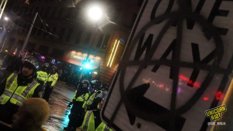 The actions of the MPD greatly agitated the protesters, who didn’t back down from the lines of police using bicycles to swerve into people. Animal-lovers watching the goings-on via social media voiced concern for the horses who had been roped into the escalated situation.