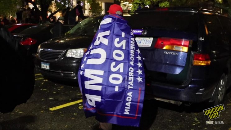Many sorts of people were out in the streets the evening of October 10 as rain drizzled on and off through the night. Leftists of every stripe were present, as well as self-identified non-Trump supporters who came out anyways, some out of concern for the safety of their fellow Minnesotans, others for the opportunity to troll their fellow residents.
