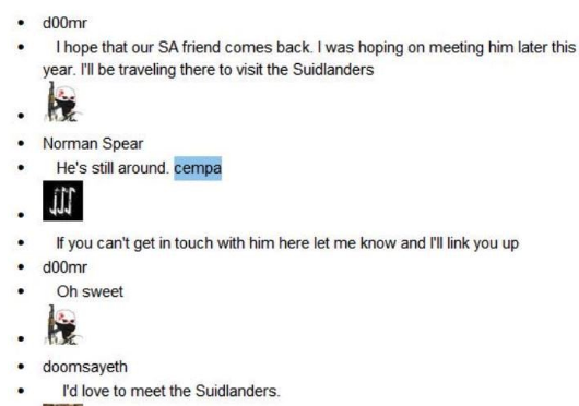Other posts by ‘Cempa’ indicate that he has been in touch with the Suidlanders and received tactical updates from the group regarding “primary extraction points” and evacuation routes.