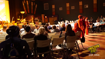 Xochi told Unicorn Riot their ultimate goal is “to create community.” Devohn said that Vector 9 “reminds me of home,” and his co-producer Comrade said that even before he was ever an official part of Uproar, Xochi made him feel like family through encouraging his comedy and introducing him to other friends who shared their mindset.