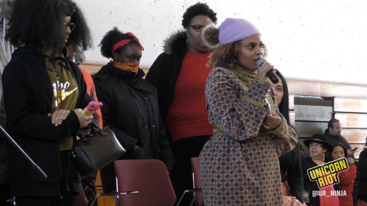 Another speaker, Scheherazade Tillet, from A Long Walk Home, a Chicago nonprofit whose members have been tracking violence against black women and girls asked those gathered, “What does it mean to really show up for one another as indigenous and black girls? And how does our solidarity impact the future for our liberation?”