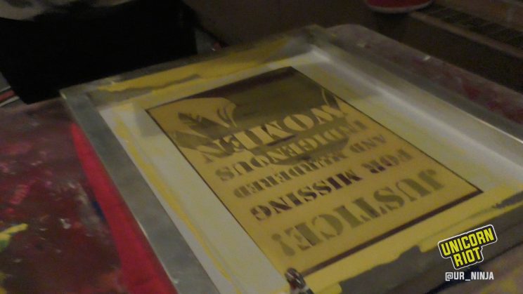“The screen-printing is a tool to communicate with other people. And the message today is that the lives of women, indigenous women are important and they’ve gone missing and they’ve been murdered. And so for us to be able to have that image, and wear it publicly is really powerful, and showing others how to do that is powerful too.“