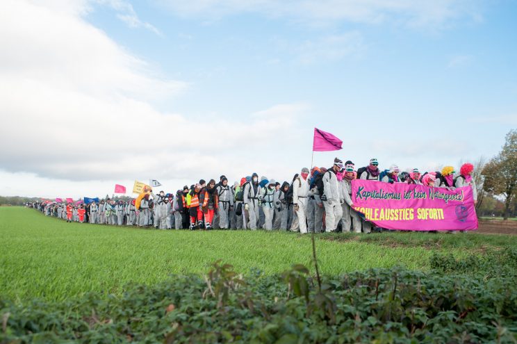 Banner reads “Kapitalismus ist kein Naturgesetz” or “Capitalism is not a Natural Law”. photo: Ende Gelände, 2016
