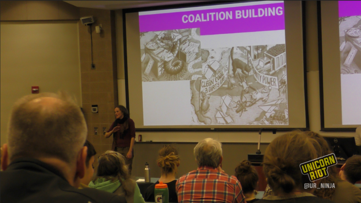 As the event wrapped up, organizers told attendees that the audience for the Minneapolis event was the largest they had seen on the U.S. tour. The next, final stop of the tour took place in Duluth, geographically nearby the resistance to Enbridge’s proposed Line 3 pipeline expansion, suggested to take a pathway through native wild rice beds. Unicorn Riot has been reporting on resistance to Line 3 for over three years.