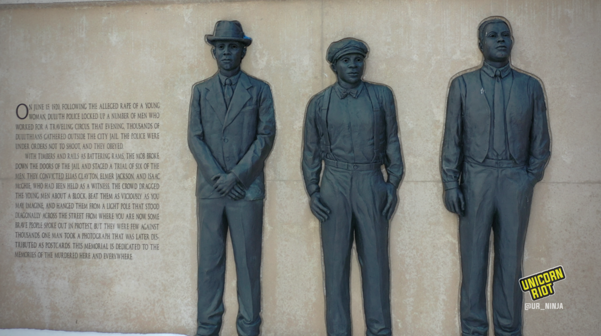 Duluth Mayor Emily Larson issued a public apology for the lynchings. Unicorn Riot reached out to her office to see if the apology was planned in coordination with the centennial of the lynchings or if George Floyd’s death prompted her words of reconciliation. Her office did not respond to our request for comment.