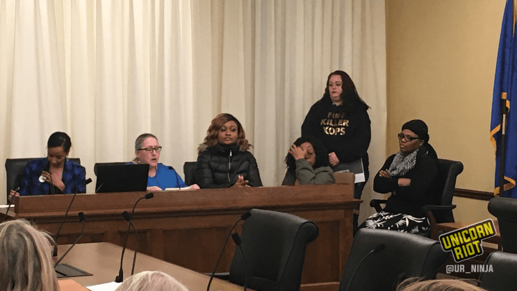 Cullars-Doty explained that it didn’t make sense to construct a panel to make recommendations on how to address police killings, only to populate the panel with people who are upholding the system: “they are not gonna break that thin blue line to make real change.“