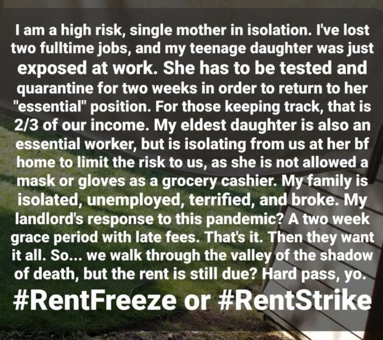 The responses Unicorn Riot received from a similar Instagram ask of why people were participating in the April Rent Strike echoed the above Twitter responses: