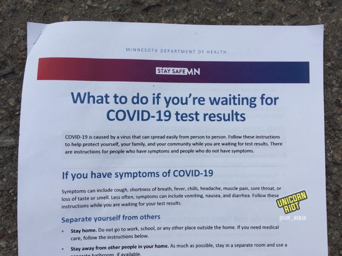 “What to do if you’re waiting for COVID–19 test results,” a three-page document from the Minnesota Department of Health (MDH) contained recommendations for both symptomatic and asymptomatic people, as well as what to do next if one’s test results come back either positive or negative.