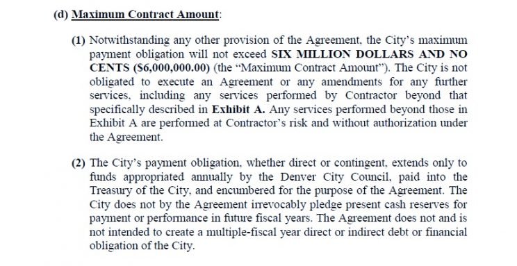 From September 2017 up until September 2018, Denver paid CES nearly $400,000. We recently obtained invoices (PDF) and e-mails (PDF) between the city and their new contracted clean-up company Environmental Hazmat Services (EHS). In the contract signed on October 11, 2018, the maximum contract amount up until October 11, 2021 is $6 million.