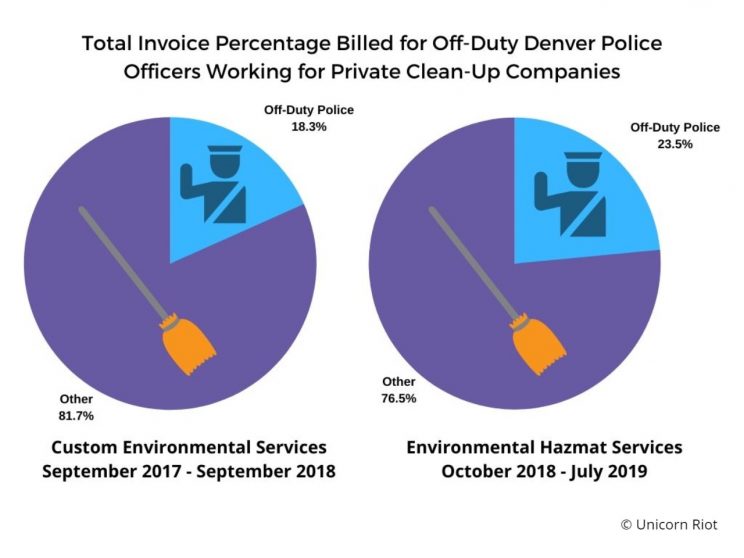 Over 20% of that total went to off-duty Denver police officers contracted by the clean-up companies.