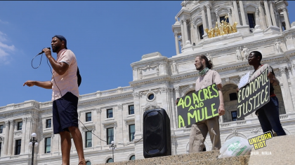 On June 19, 2020, at a vigil for George Floyd and other stolen lives in a makeshift graveyard with headstones of victims, Unicorn Riot heard from Patriece Standberry, as she stood in front of the headstone with her sister’s name on it. Standberry shared some of her sister Nekeya Moody’s story.