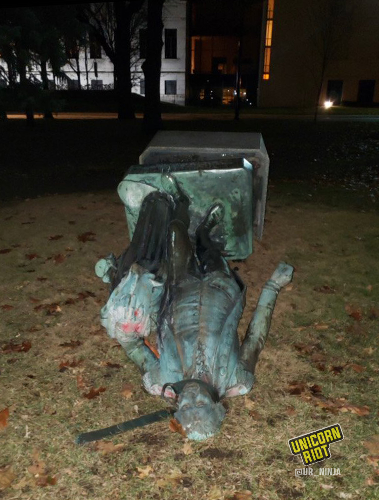 Statues Toppled and Defaced in Minneapolis on Thanksgiving Day