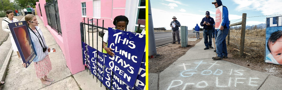 Even though abortion is currently a constitutional right in the U.S., more than half the state legislatures are on a crusade to repeal and criminalize the right to choose. The war over abortion and bodily autonomy isn’t only fought in Congress and the courts, but also outside reproductive health clinics, inside doctor’s offices, at church, and in the streets.