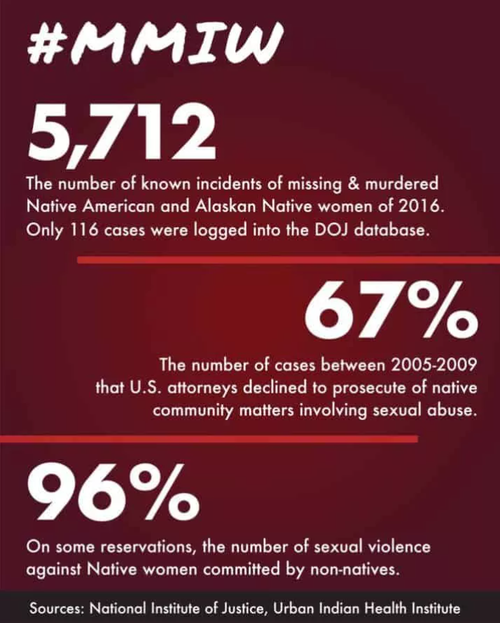 “In 2016, 5,712 Indigenous women and girls were reported missing. Again, 5,712. But only 116 were logged by the U.S. Department of Justice Federal Missing Persons Database.”