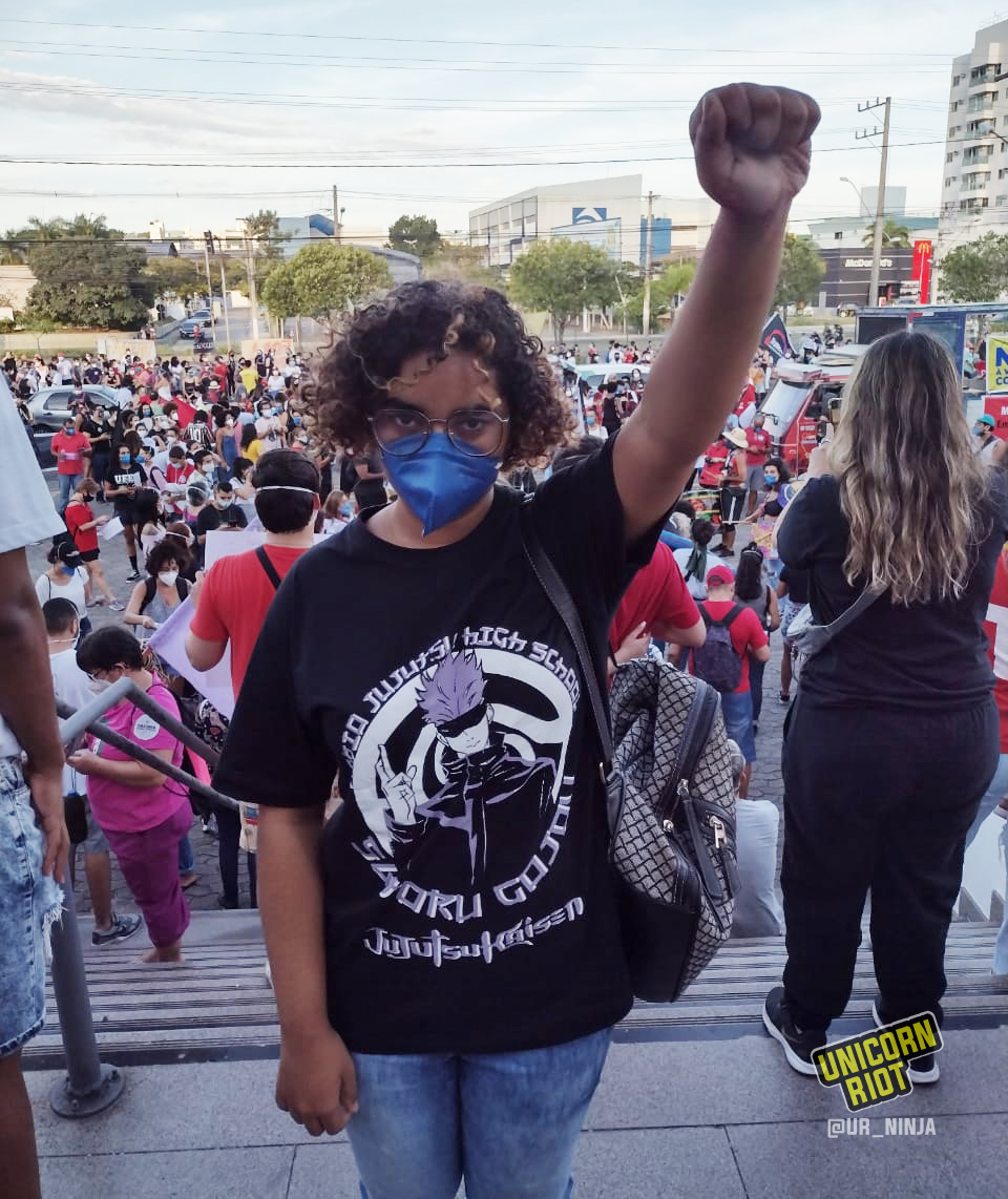 Hundreds of thousands of protesters took to the streets in all regions of Brazil last weekend to protest against the administration of President Jair Messias Bolsonaro and call for his impeachment. The day of massive protest came as the Brazilian people live the uncertainties of tomorrow due to the negligence of the federal government to contain the coronavirus in the country. Unicorn Riot spoke with Júlia, a poet and representative of the Black Youth Forum, at a protest in Vitória, Espírito Santo.
