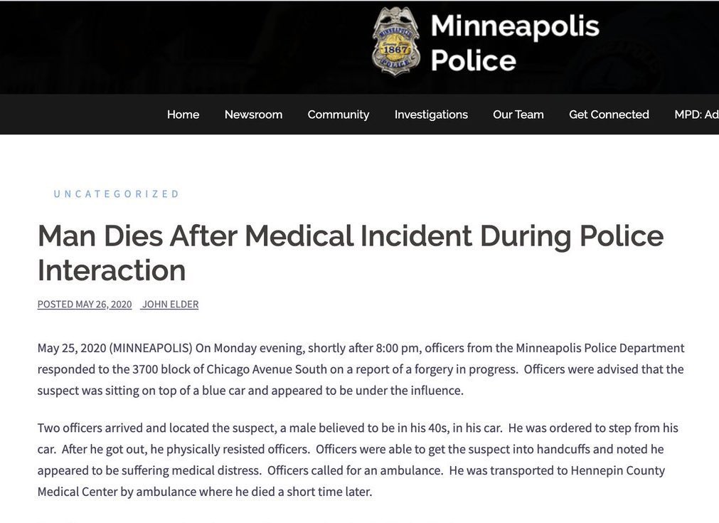 - Minneapolis Police Murder Handcuffed Man With Neck-Kneel - May 26, 2020