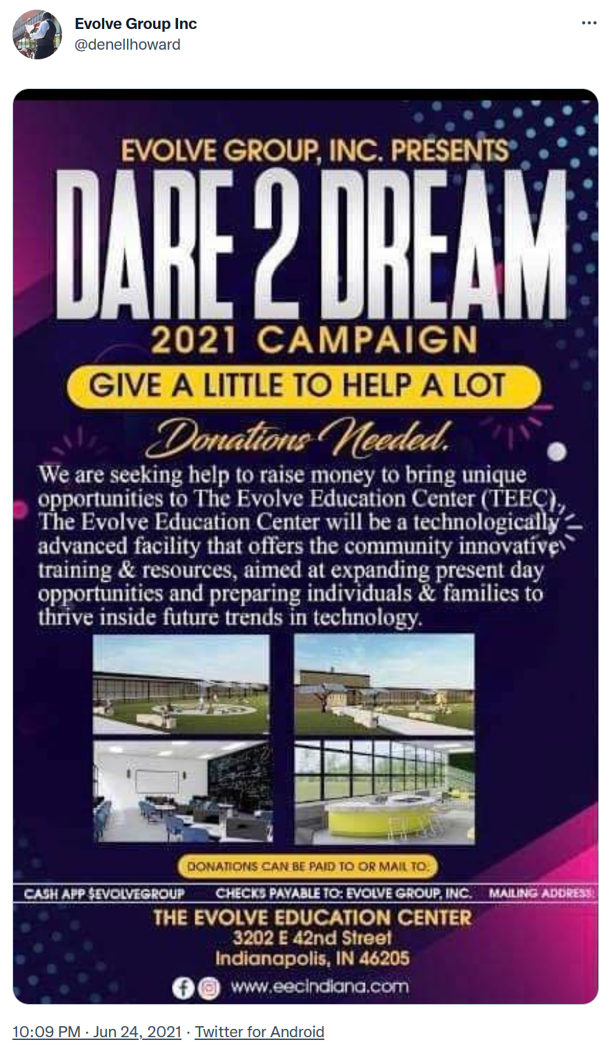 Pastor Howard is more than just EVOLVE, he’s been mentoring Indianapolis youth from the streets to gymnasiums for many years. His church is also a focal point of community resourcefulness with youth programming, workshops, trainings, and mental health events among others.