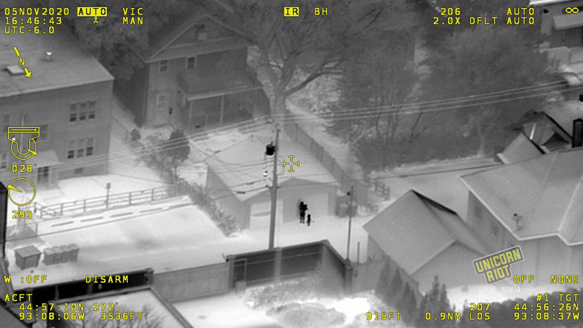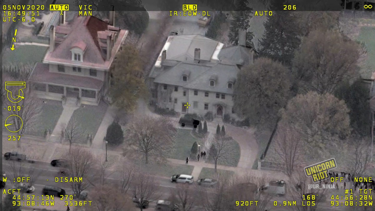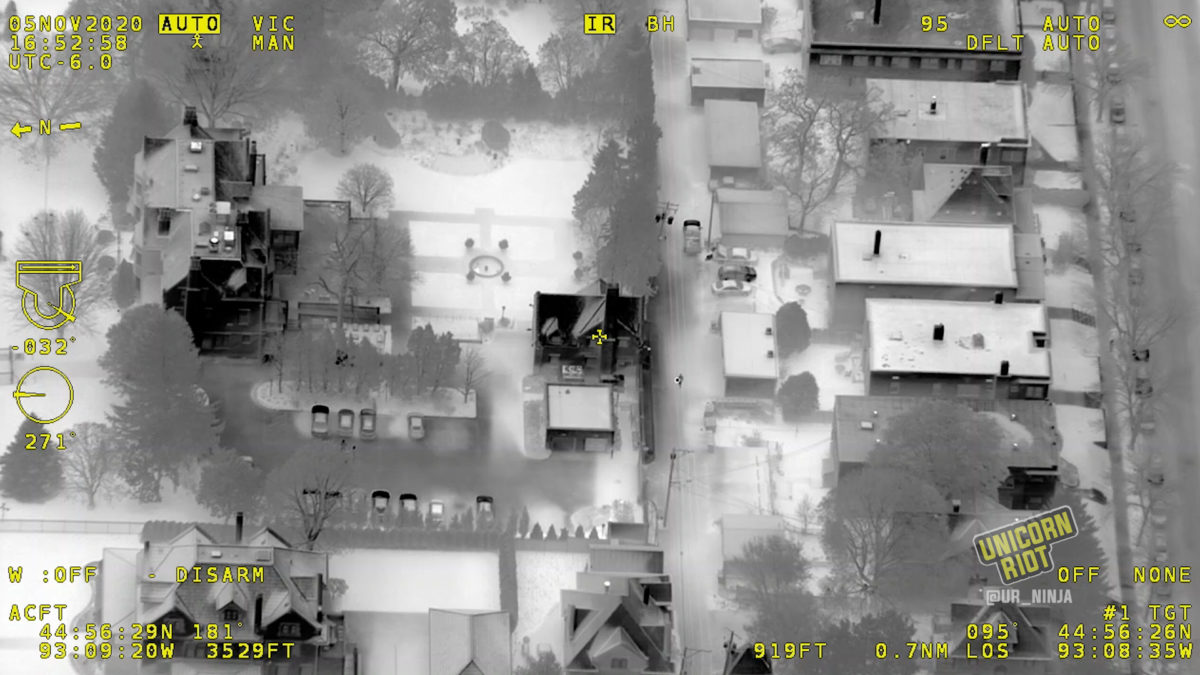 Saint Paul, MN – Footage obtained by Unicorn Riot provides a never-before-seen view of the powerful surveillance capabilities police spy planes possess. Nearly two full hours of video was released by the Minnesota State Patrol following public records requests for footage and data collected by their Cirrus SR22 aircraft, N115SP, as it circled a rally outside the Governor’s Residence in Saint Paul.