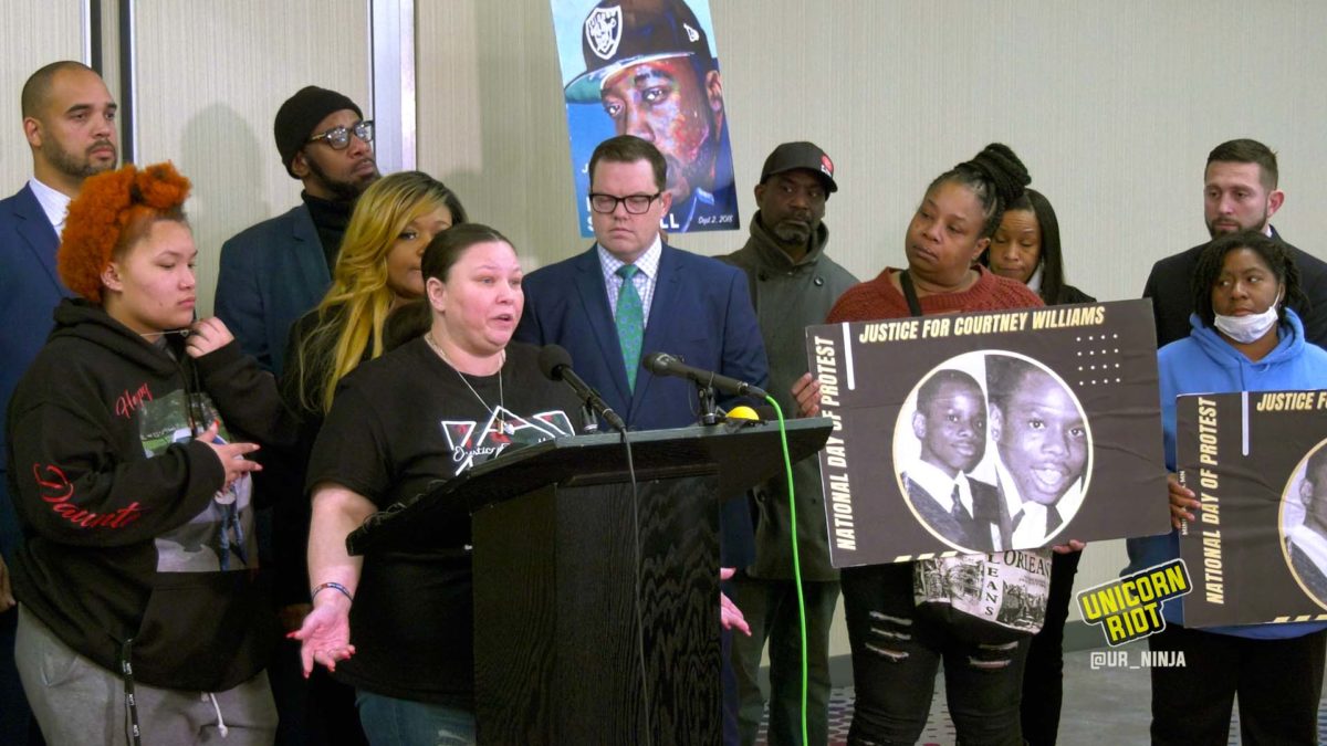 Minneapolis, MN – Grieving family members impacted by law enforcement killings demanded accountability for police violence on the day before the Kim Potter trial began. A press conference was held Monday morning just blocks away from the Hennepin County Government Center and featured a dozen family members, attorneys, and elected officials.