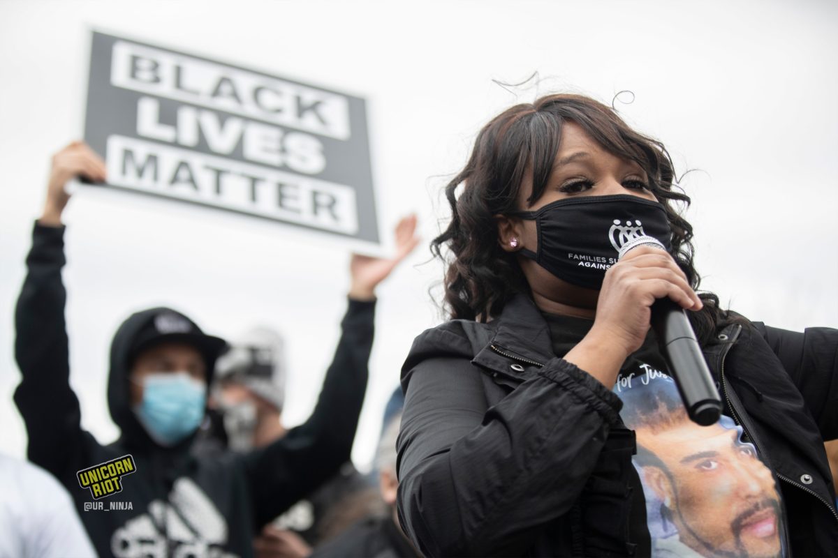 The march, attended by hundreds and protected by an armed presence of Black militants, featured speeches from family and friends of many stolen lives, including: Hardel Sherrell, Demetrius Hill, Jaffort Smith, Travis Jordan, Kobe Heisler, Dolal Idd, Paul Castaway, George Floyd, Jamar Clark, and Brian Quiñones-Rosario.