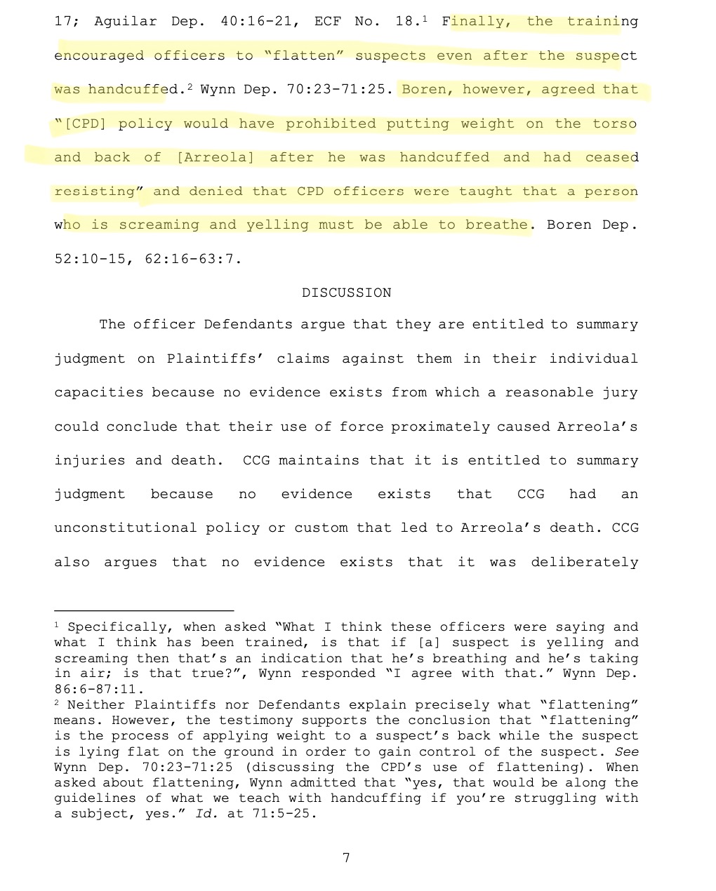 Additionally, a technique called “flattening” is authorized through police training, which allows continued pressure even after a person is cuffed. In the training officers are taught to not apply pressure to the back, chest or neck when deploying this technique—something the responding officers disregarded.