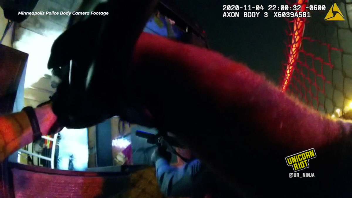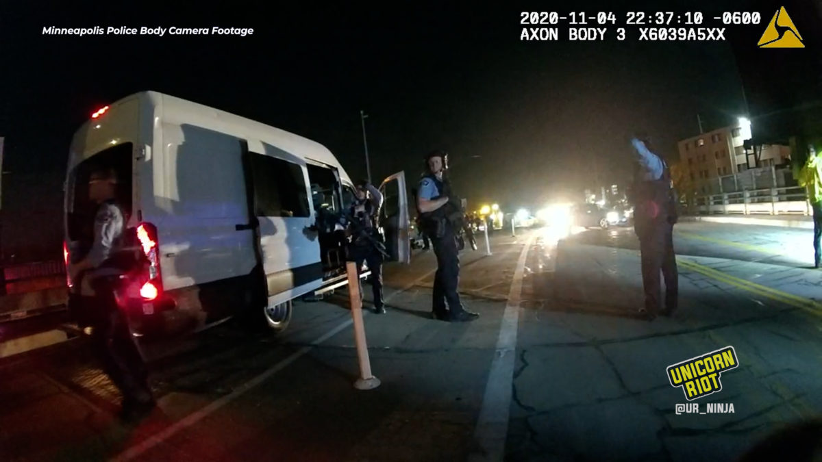 Responding to a suspicious vehicle call around 10 p.m. on November 4, 2020, the CART team pulled up to a parked truck on 20th Avenue overlooking I-94 near Minneapolis’ West Bank. Eight officers activated their body cameras (Unicorn Riot has obtained all 8 videos.)