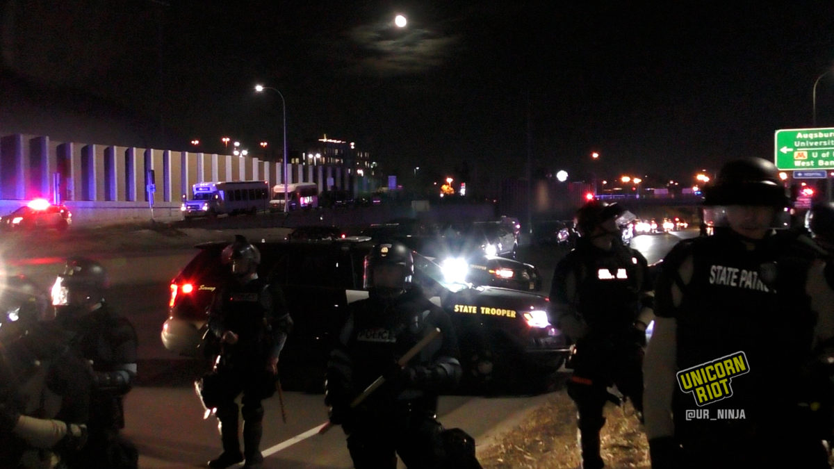 The traffic stop came during a mass arrest of 646 leftist protesters who were ‘kettled’ on I-94 by a large force of Minnesota State Troopers, Minneapolis Police, University of Minnesota Police, and other officers under the aegis of the Department of Public Safety (images below).