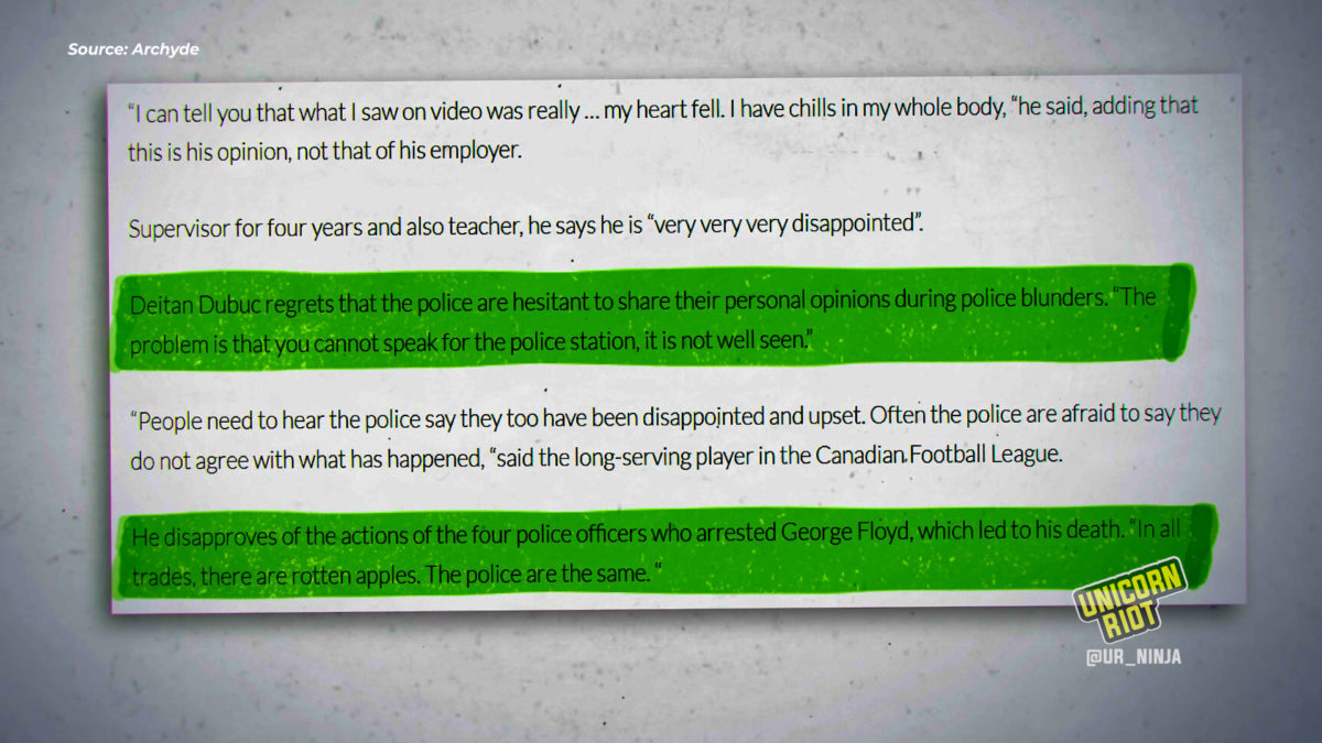 After former MPD officer Derek Chauvin killed George Floyd, Dubuc spoke to Canadian press, breaking the unwritten rule of speaking publicly against the department.