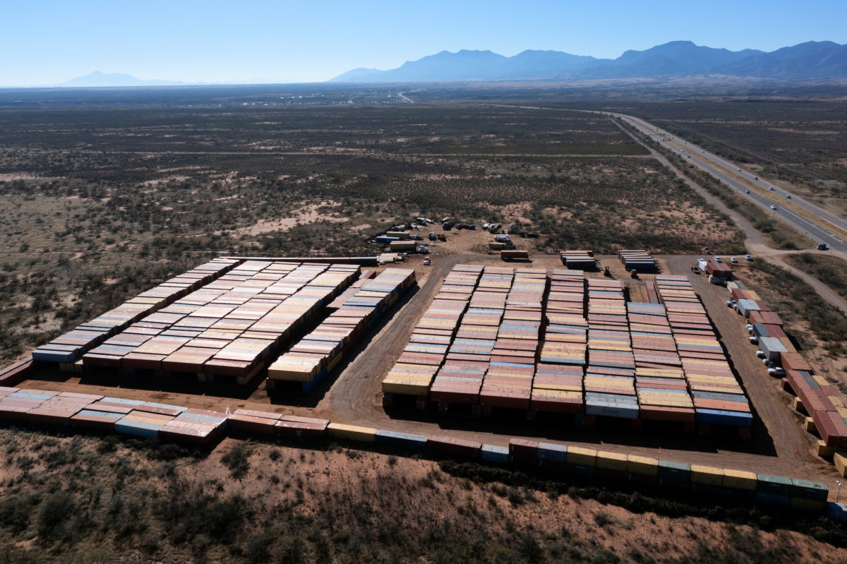 Workers have been staging the containers in an unincorporated area of Cochise County, halfway between Whetstone and Huachuca City off Arizona State Highway 90 (31°40’21.2″N 110°20’58.6″W). The 88-acre plot of land is owned by the James and Jennifer Douglass Family Revocable Trust, according to Cochise County land records.
