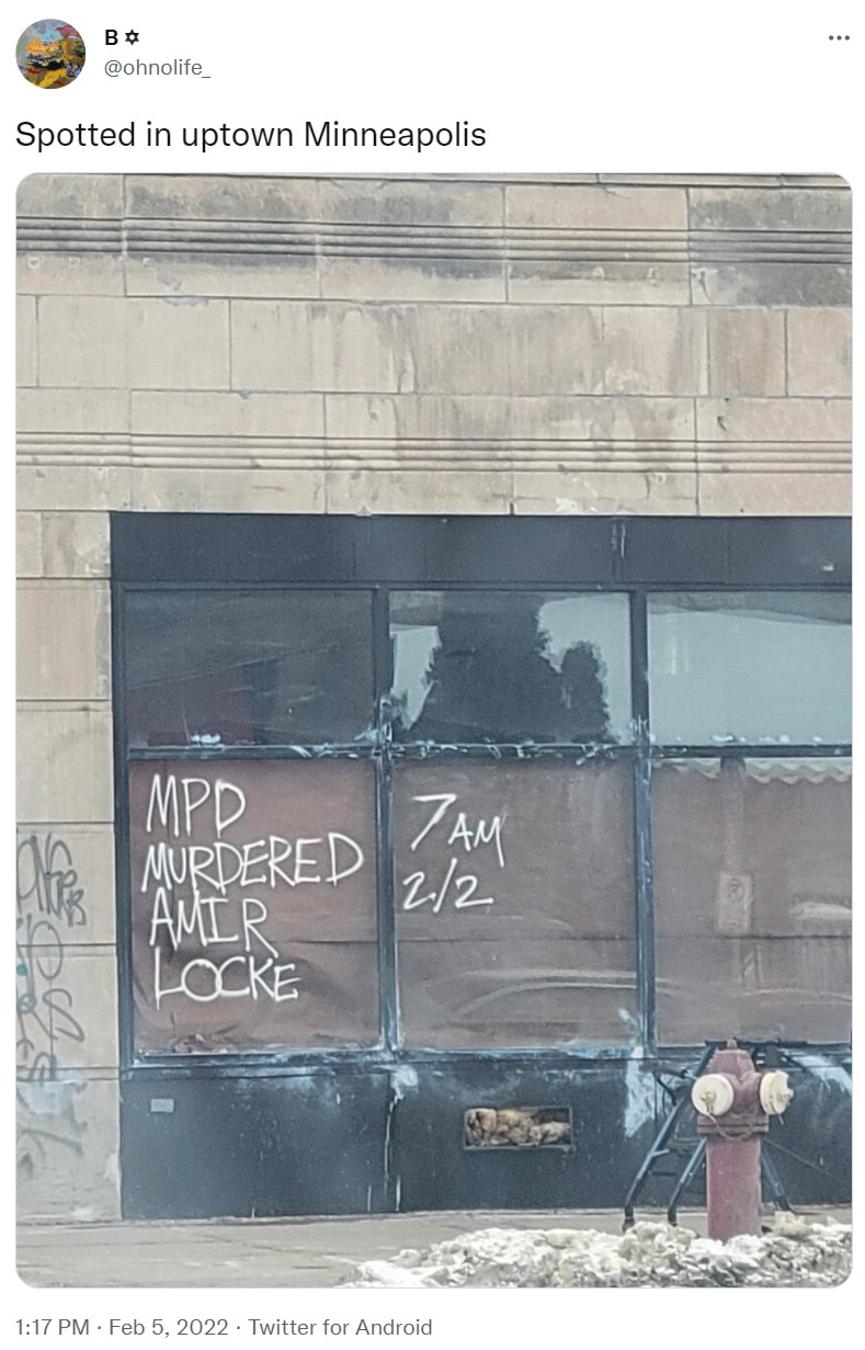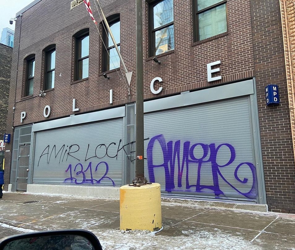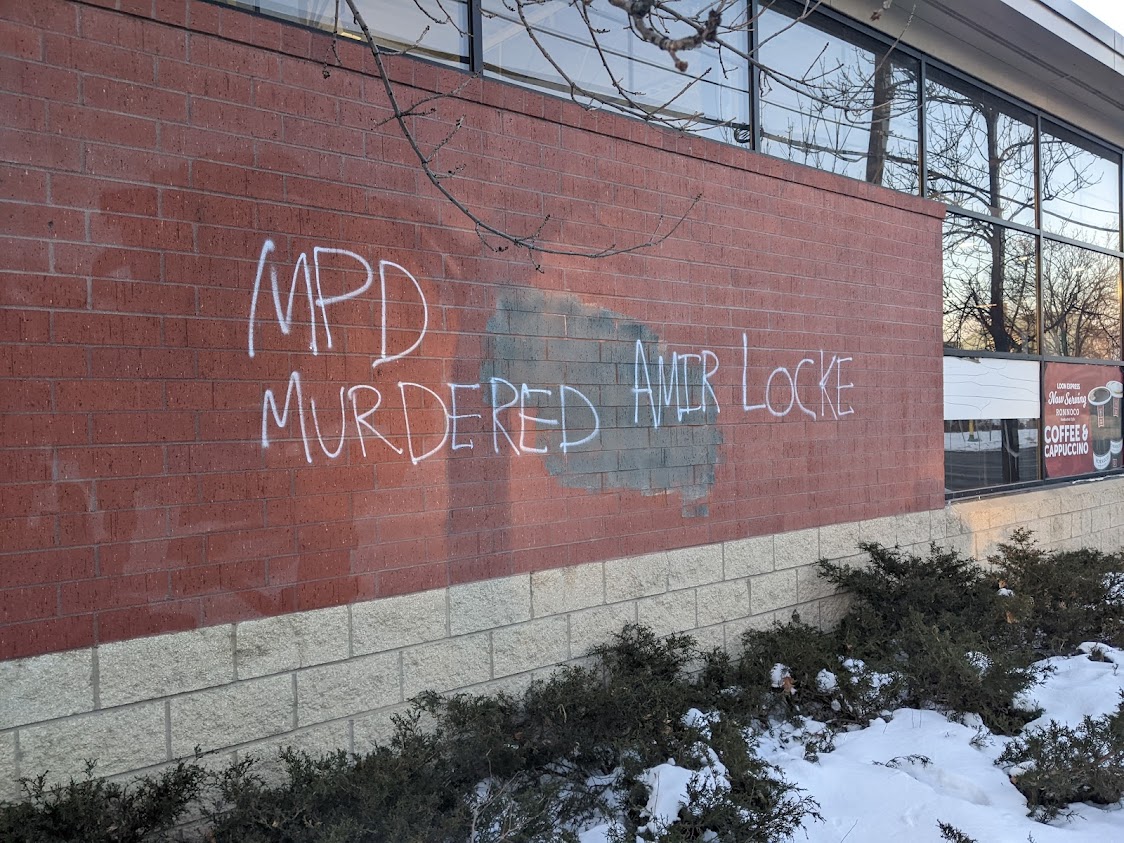 Graffiti reading “Amir,” “Amir Locke,” “RIP Amir Locke,” and “MPD Murdered Amir Locke,” are some of what’s been posted to the internet. The images below represent only a small portion of the graffiti that can be seen in various places across Minneapolis.