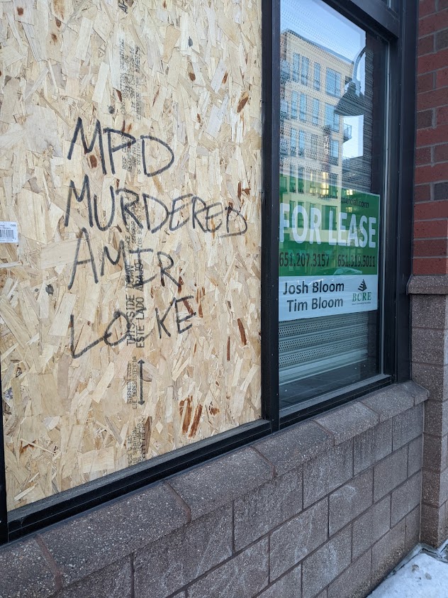 Discontent is often expressed via street art. A new era of anti-police graffiti in Minneapolis was spawned during the George Floyd Uprising. The art initially permeated the boarded up buildings and store fronts and has since continued on walls after recent police killings of Dolal Idd, Winston Smith, and now Amir Locke.