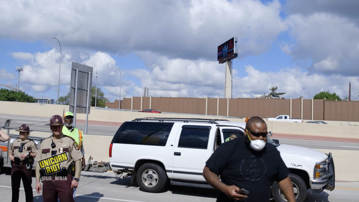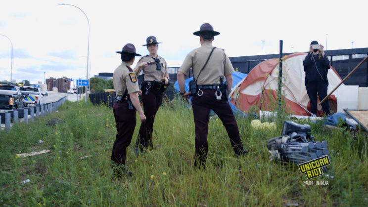 Filmed discussions between press, eviction defenders and the authorities showed Minnesota State Patrol officers announce that they hadn’t seen proof that an eviction notice was given, but that MnDOT had given notice to residents of the camp in the prior week. Some residents said they never received notice. The authorities said their supervisor would bring the documents, however the documents were never shown.