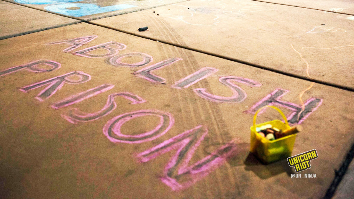 After about an hour of discussion and preparations, a portion of the crowd began to march in circles through the roundabout banging pots and pans while others drew with sidewalk chalk. People banged on street signs with sticks and rocks. Detainees flashed the lights of their cells in silent communion while Lil’ Boosie’s anti-cop anthem blasted from the mobile sound system. Mourners carried prayer candles as they shouted along with the music.